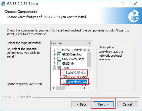 在安装GNS3软件环境之前首先要安装WinPcap和Wireshark