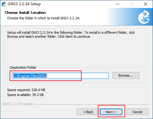 在这里选择要在其中安装GNS3的目录,将路径改成自己想要存放的目录,然后点击next