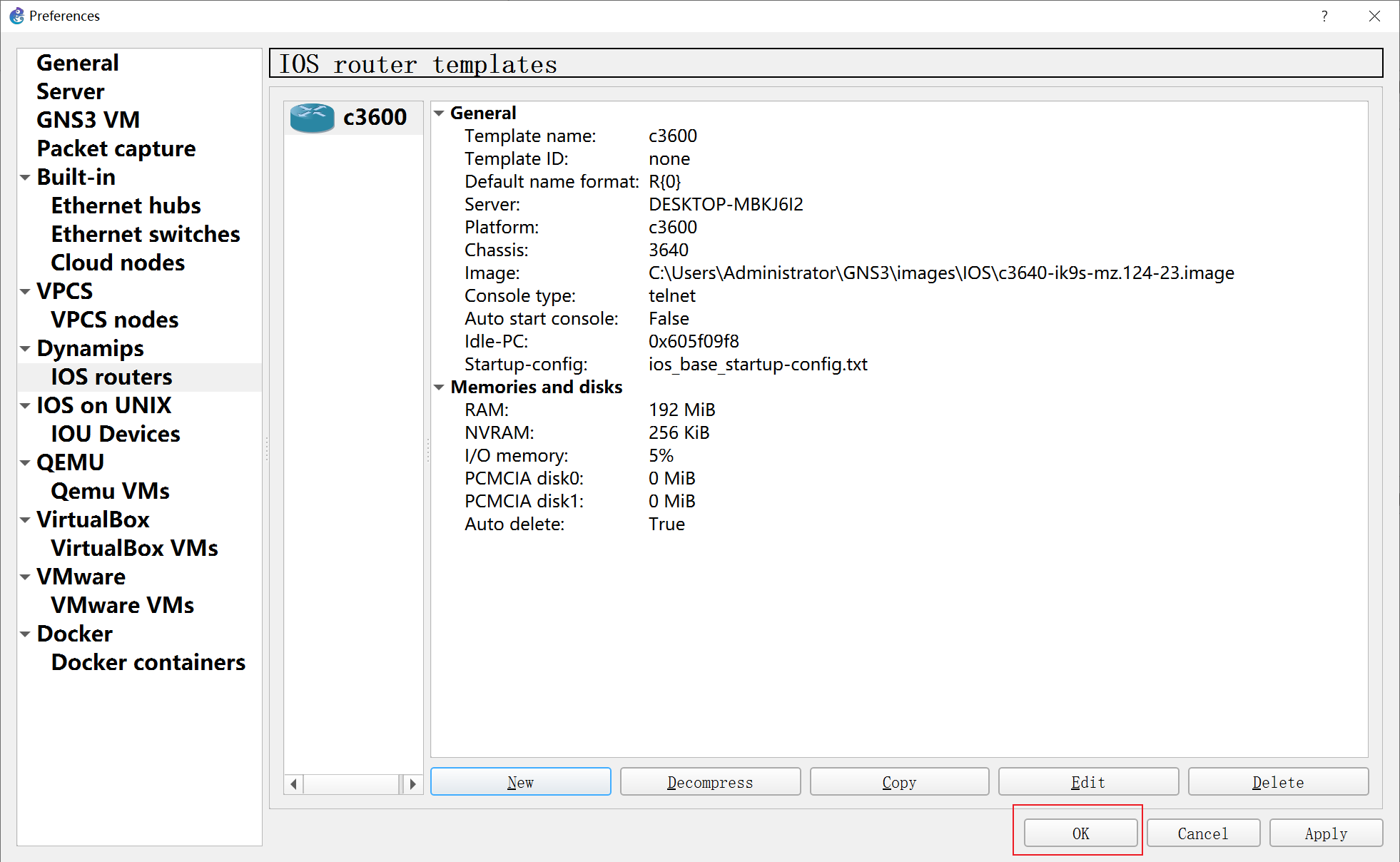 为了后续的学习与使用,我们要学会如何使用GNS3导入路由器c3640