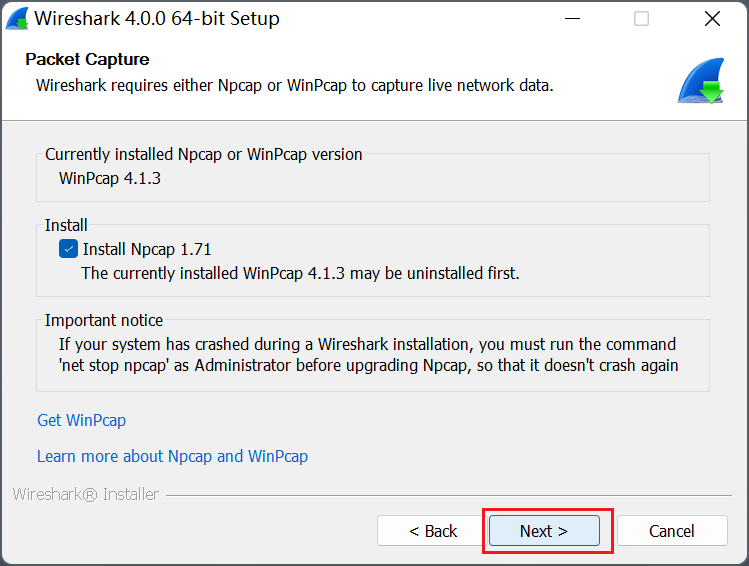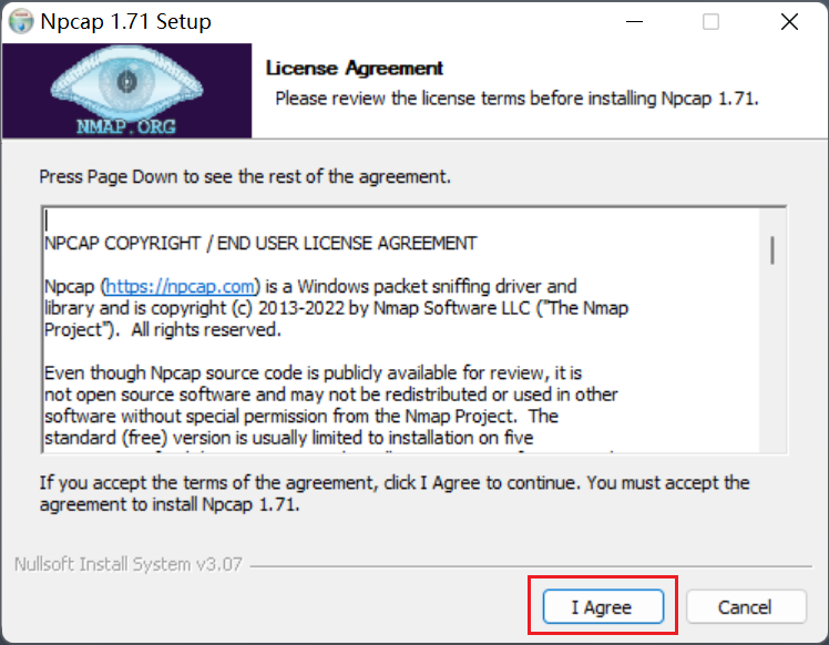 这里需要安装Npcap,如果电脑上已安装的可以忽略