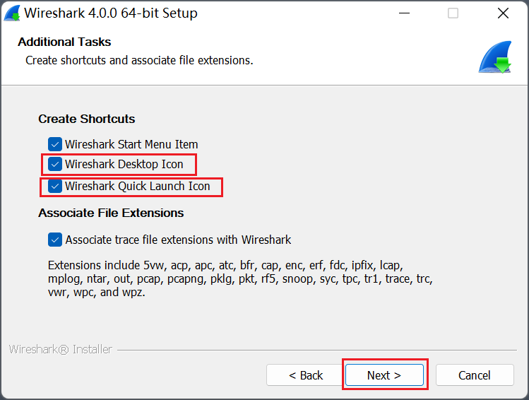 在这里把Wireshark Desktop Icon和Wireshark Quick Launch Icon
