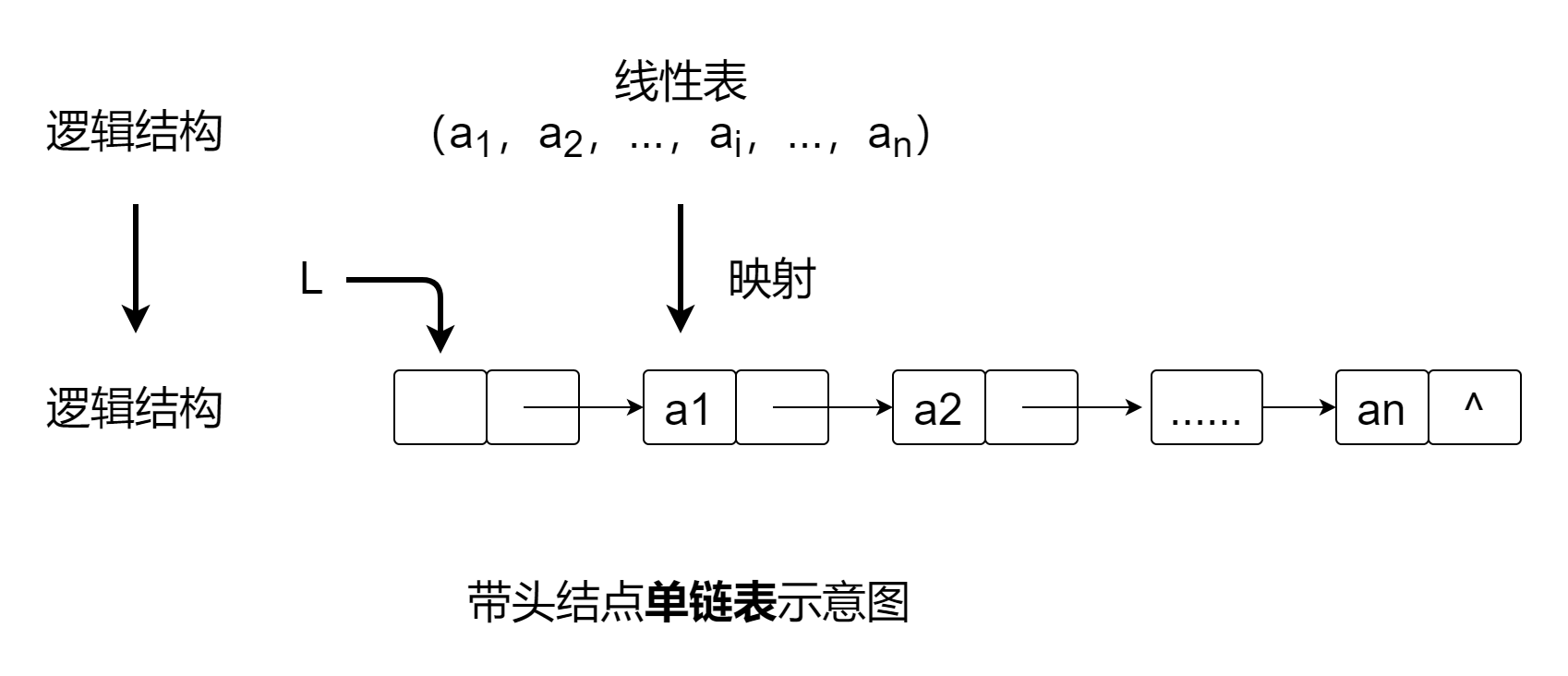 单链表是由头指针唯一确定,因此单链表可以用头指针的名字来命名。